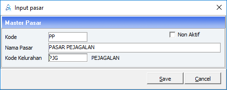 4. Lalu Klik save. Maka akan muncul jendela Master Group Pasar.