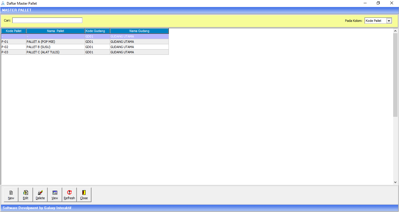 Kalau pallet sudah digunakan, tidak boleh di hapus atau diubah kodenya karena akan mengakibatkan kerusakan data transaksi yang terkait dengan gudang.