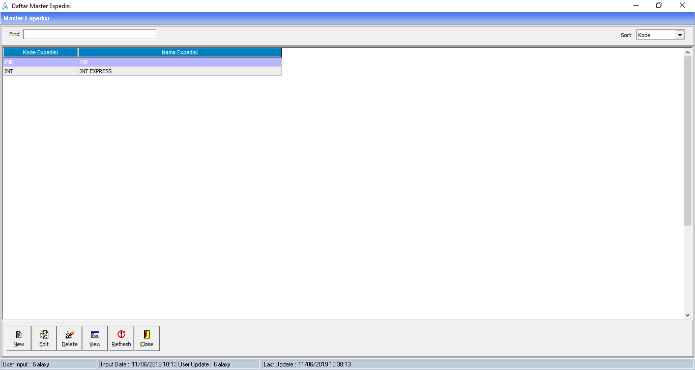 Fungsi dari menu ini adalah untuk menginput Jasa Ekspedisi yang biasa digunakan oleh supplier untuk mengirim barang ke distributor.