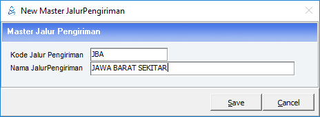 2. Kemudian klik New pada jendela Master Jalur Pengiriman,