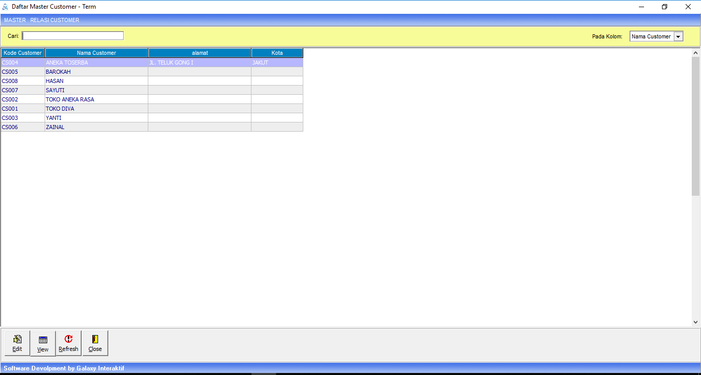 2) Maka akan muncul jendela Master Customer, pilih customer yang akan di tambahkan term nya kemudian klik Edit.