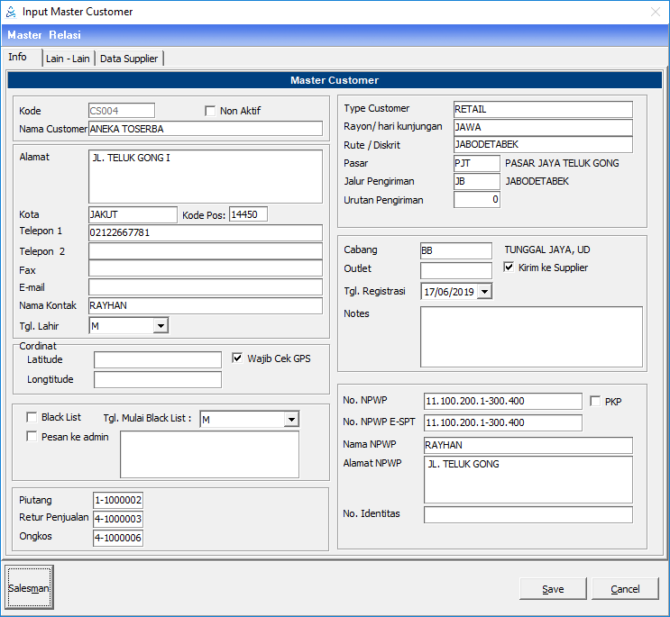 5) Setelah selesai, klik Save untuk menyimpan data.