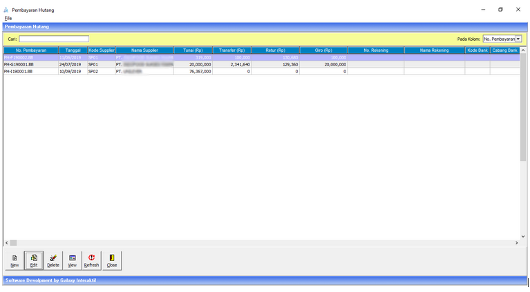 2. Maka akan muncul jendela Master Pembayaran Hutang, kemudian klik View.