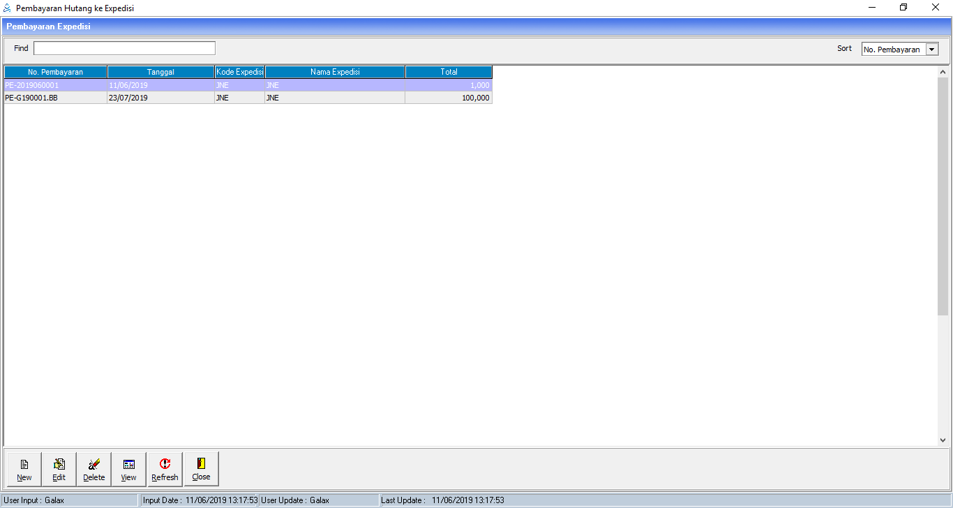 2. Maka akan muncul jendela Master Pembayaran Ekspedisi, kemudian klik View.