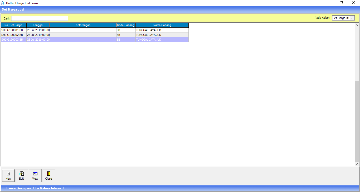 4. Lalu Klik save. Maka akan muncul jendela Master Set Harga Jual.