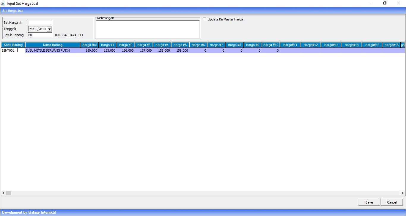 | Tanggal | Diisi tanggal dibuatnya set harga jual |