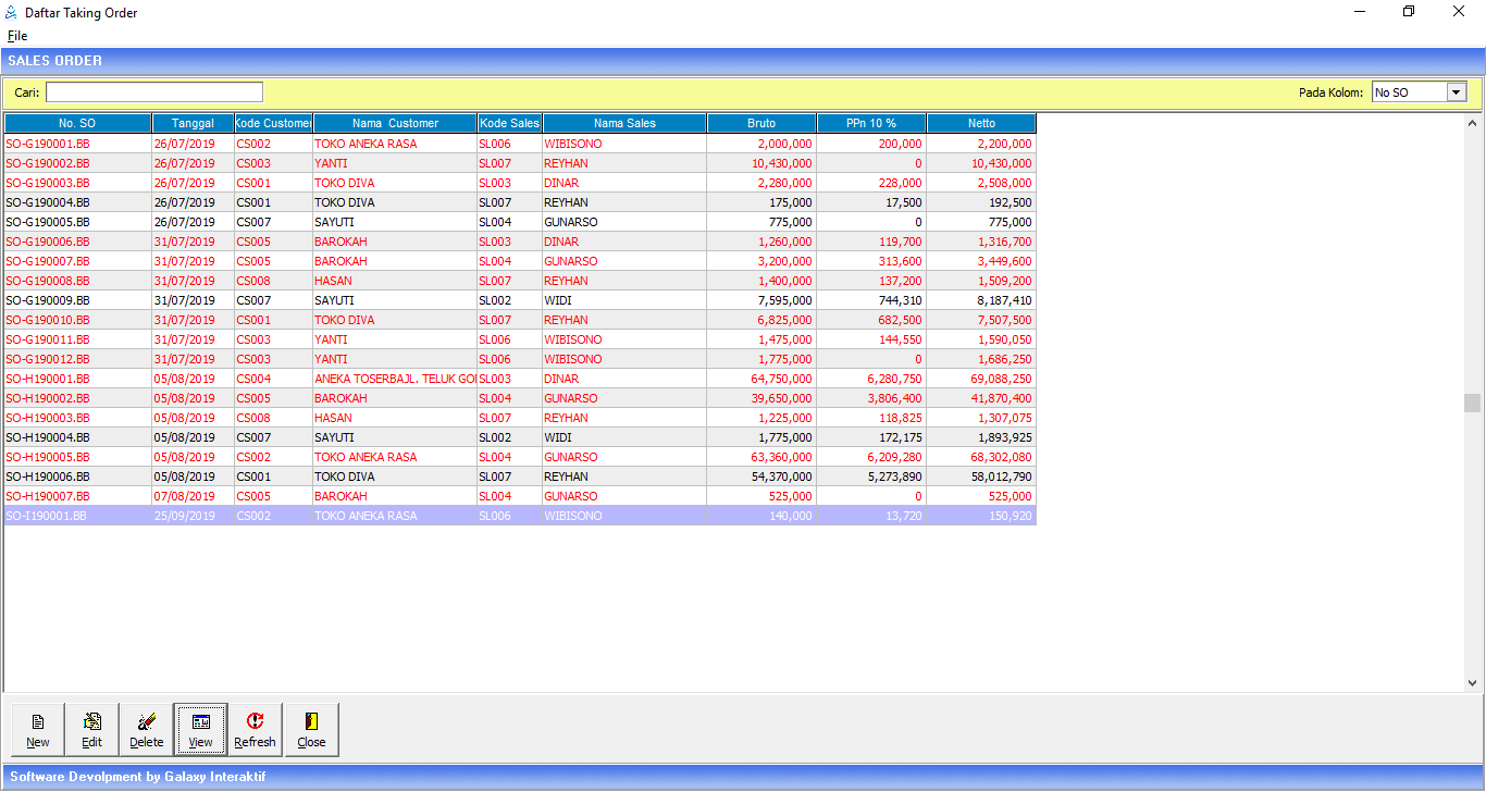 | Customer | Klik 2x untuk mengambil kode customer yang memesan barang |