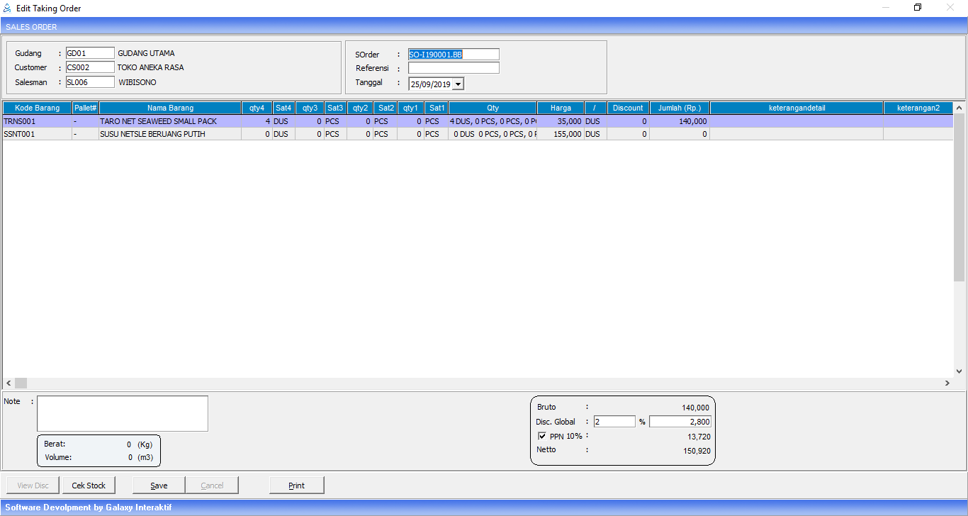 | Disc.Global | Diisi presentase disk.nota |