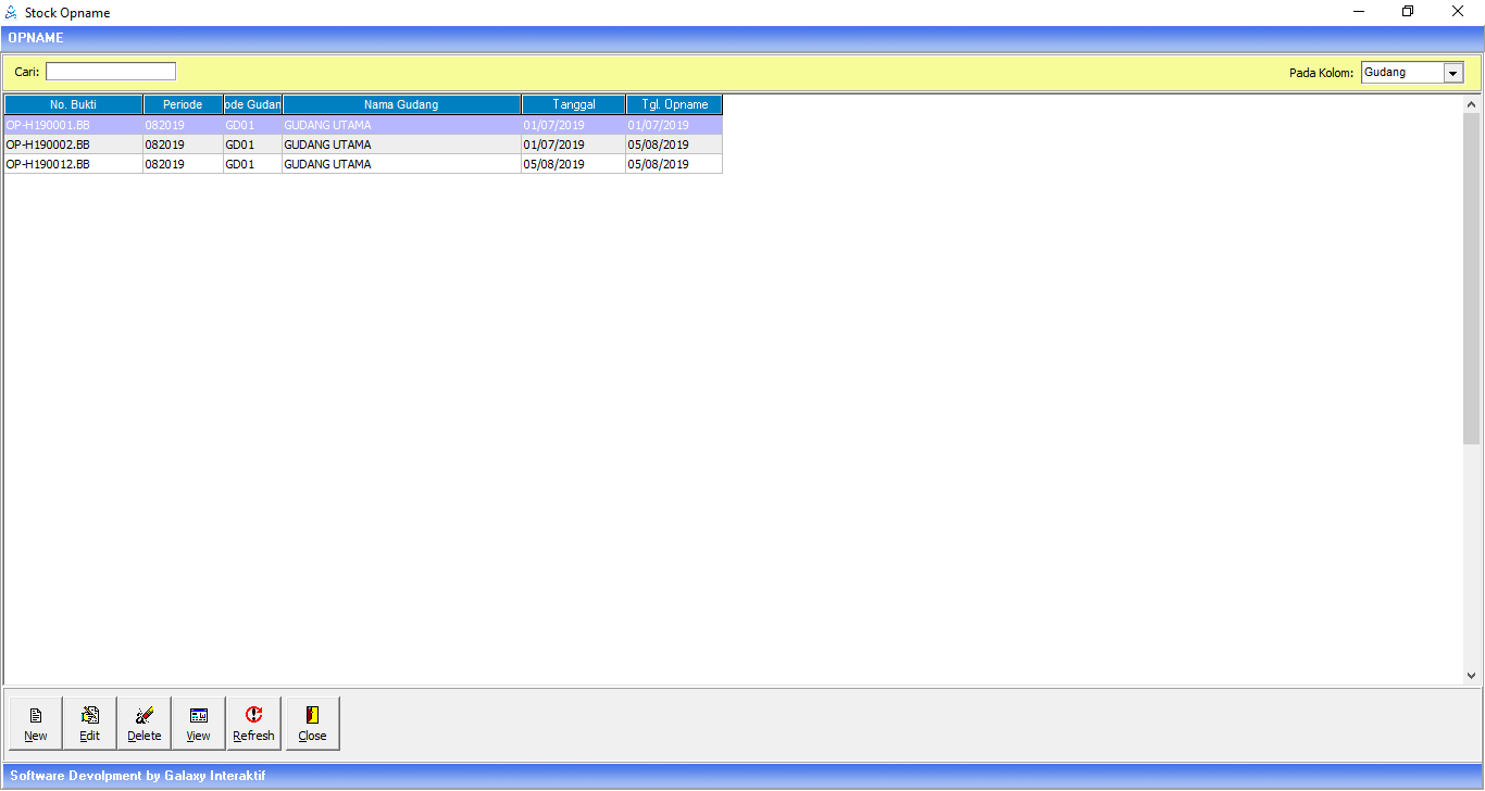 | Gudang | Klik 2x untuk mengambil kode gudang yang akan diopname |
