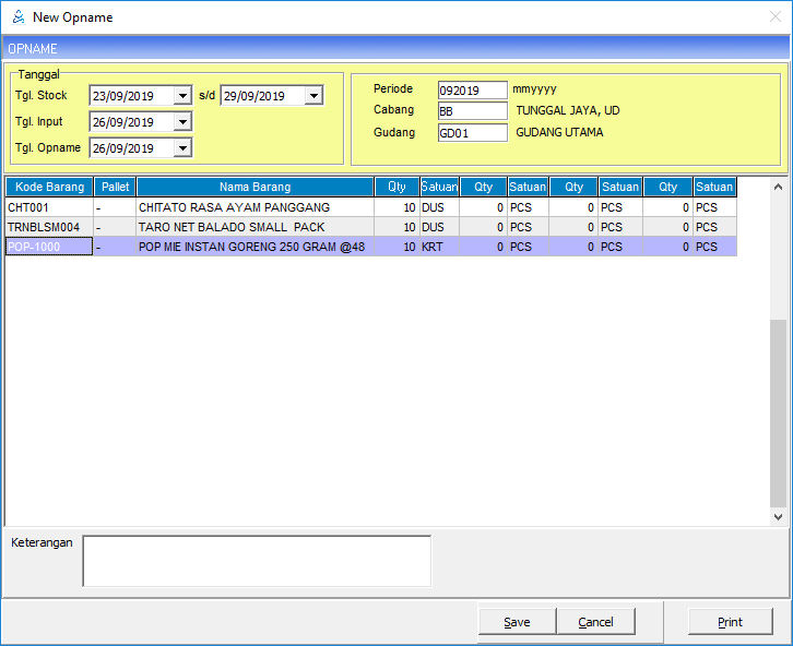 | Cabang | Klik 2x untuk mengambil kode cabang yang gudangnya diopname. |