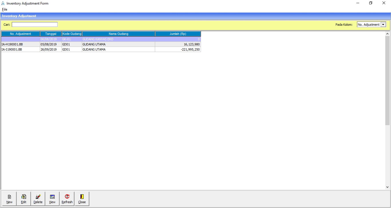 Gudang Klik 2x kode gudang yang barangnya akan di adjust