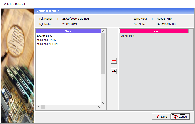 No.Adjustment Muncul otomatis nomor adjustment setelah data ini disimpan