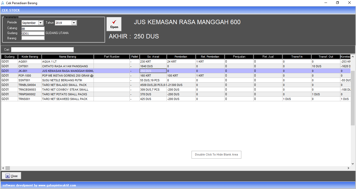 | Barang | Klik 2x untuk mengambil kode barang jika pengecekkan akan dilakukan perbarang. |