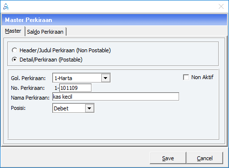 Header/Detail Pilih Header jika akun tersebut sbg header, pilih Detail jika akun tersebut sbg detail.