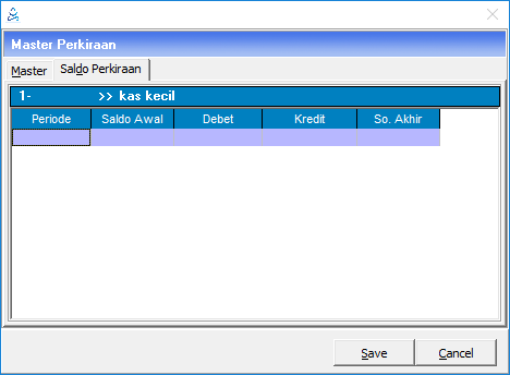4. Lalu Klik save. Maka akan muncul jendela Master Perkiraan.