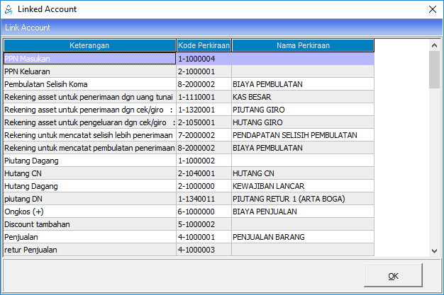 | Pembulatan Selisih Koma | Diisi akun untuk menampung pembulatan selisih koma |