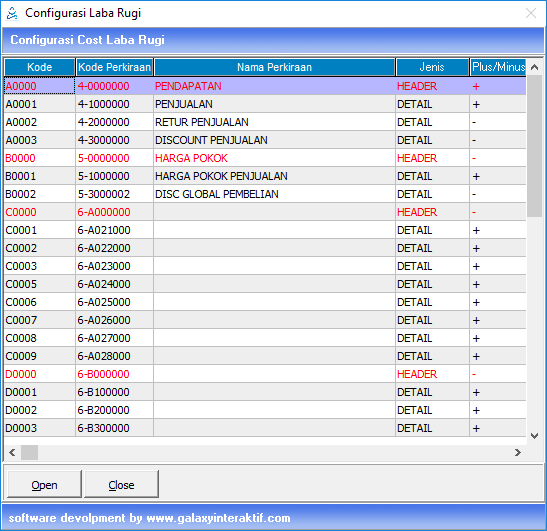 Menu Configurasi Laba/Rugi terdapat pada Modul Accounting >> Configurasi >> Configurasi Laba Rugi.