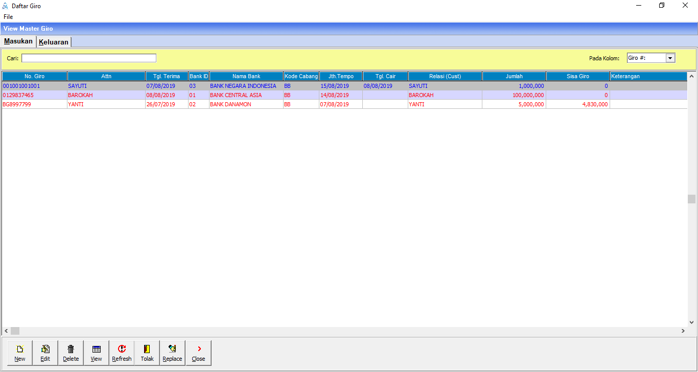 2. Maka akan muncul jendela Master Buku Giro, kemudian klik View.