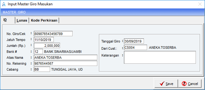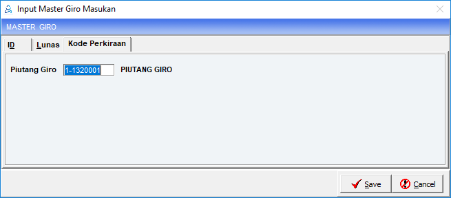 4. Lalu Klik save. Maka akan muncul jendela Master Buku Giro.