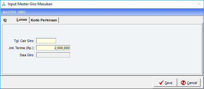 >> Contoh dibawah ini adalah Giro Masukan, tampil beberapa tab dibawah ini.