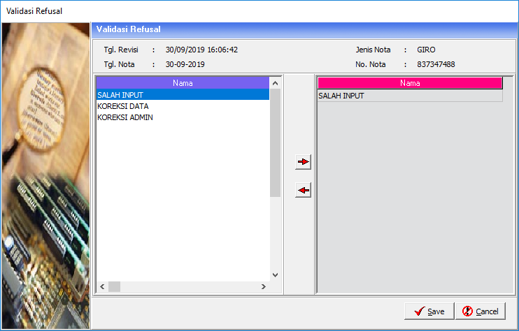 Untuk manjeadikan giro yang terinput menjadi giro tolakan.