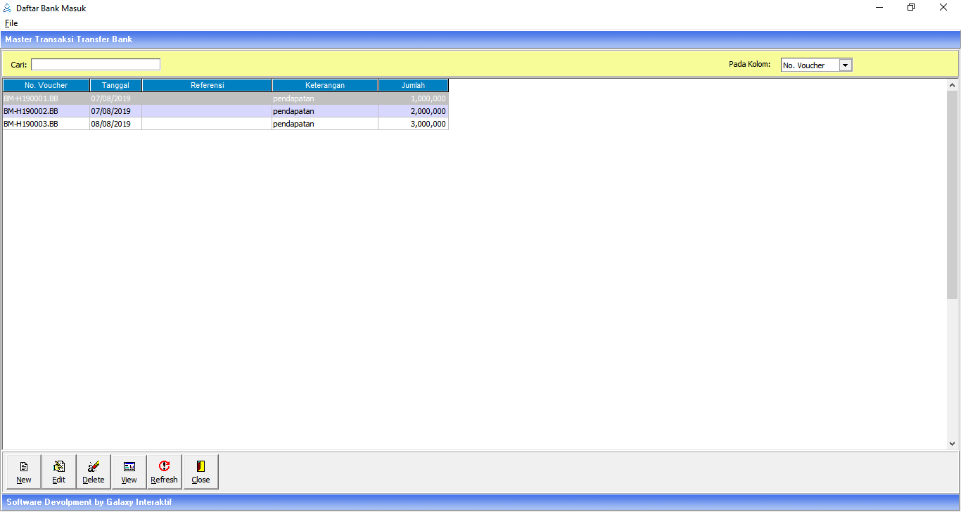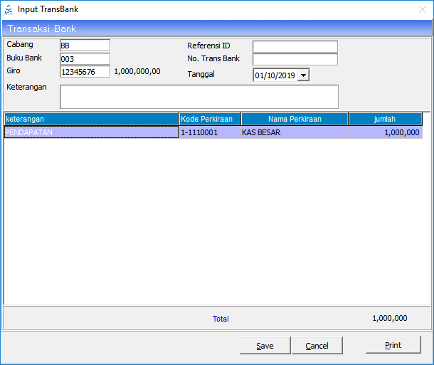 | Giro | Klik 2x untuk mengambil kode giro jika data Bank Masuk tersebut menggunakan Buku Giro |