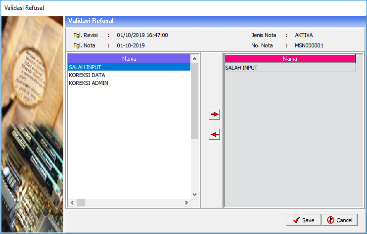 Lokasi/Qty Klik 2x untuk mengambil kode lokasi aktiva/ Masukkan kuantitas aktiva