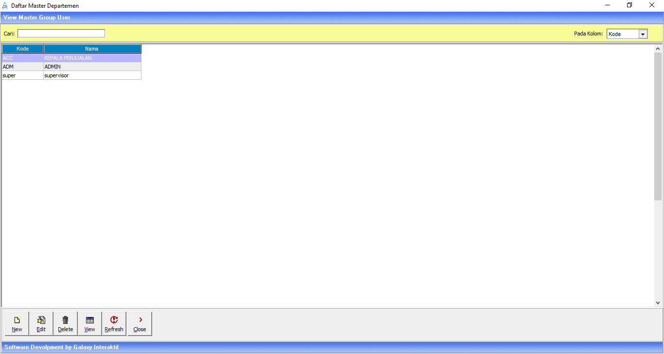 2. Maka akan muncul jendela Master Group User, kemudian klik View.
