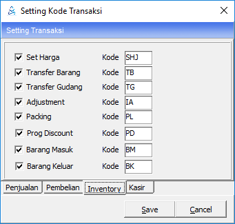 | Kode Transfer Gudang | Diisi kode transaksi untuk menu Transfer Antar Lokasi |