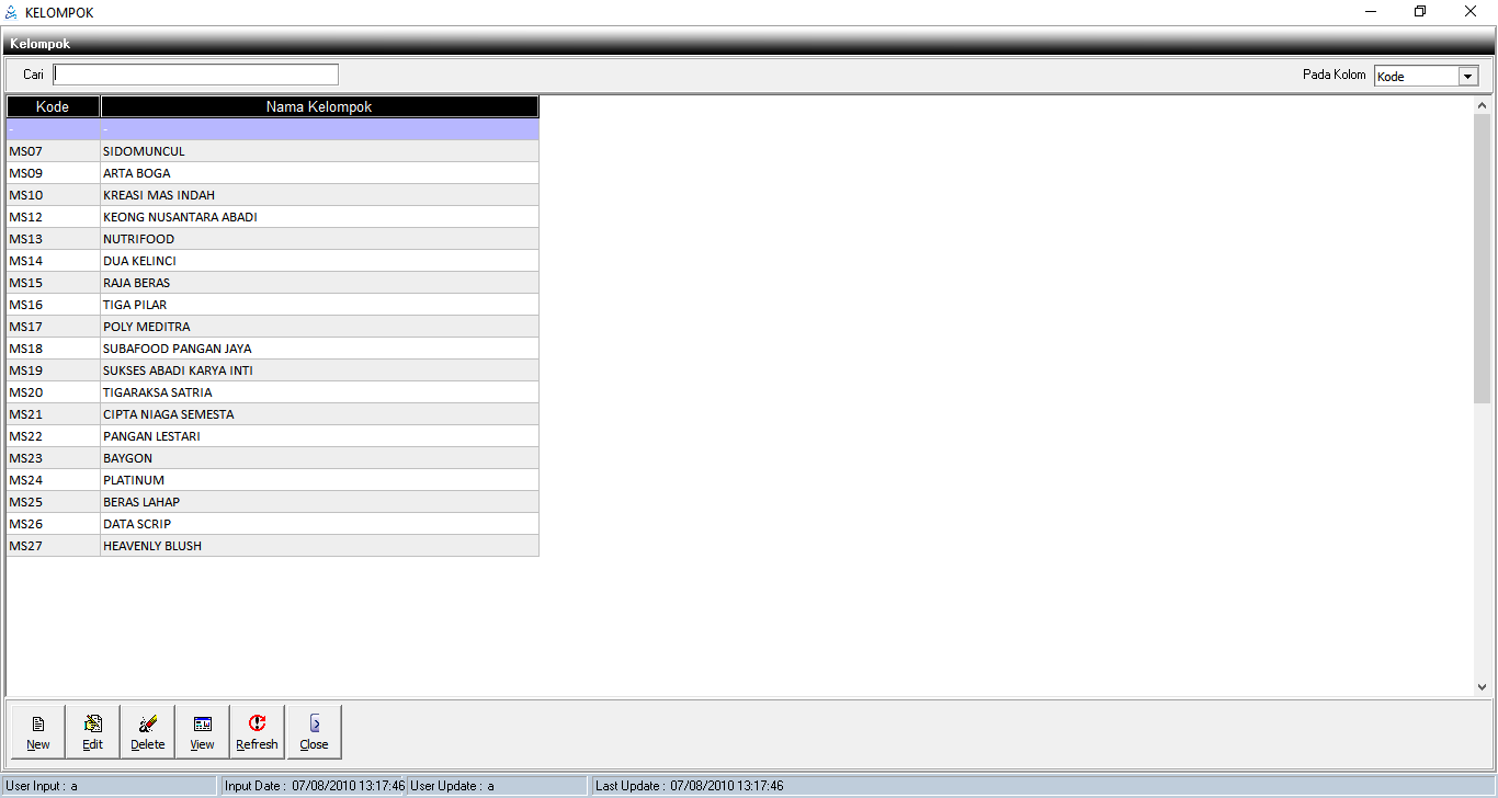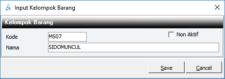 Barang dapat dikelompokkan menjadi beberapa bagian, menu Kelompok Barang ini adalah kelompok terbesar dari barang yang dapat dibagi lagi menjadi Sub Kelompok.