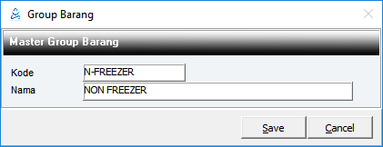 | Kode | Diisi kode grup barang, bisa berupa huruf, angka maupun simbol max 10 karakter. |