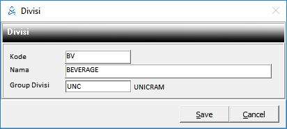 Master divisi ini digunakan untuk mengelompokkan barang berdasarkan divisi supplier, dan master ini merupakan turunan dari Master Group Divisi.