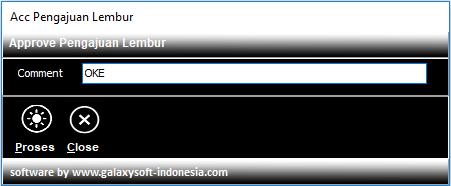 2.Maka akan muncul form untuk menginput komentar Acc/Tolak, masukkan komentar Acc/Tolak kemudian klik Proses.