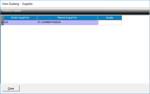 Diisi kode gudang berdasarkan supplier, biasanya dipakai untuk sinkronisasi data melalui program interface.