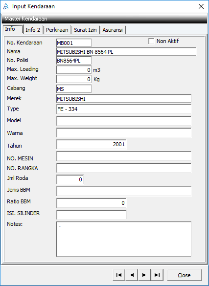 Diisi informasi umum kendaraan.
