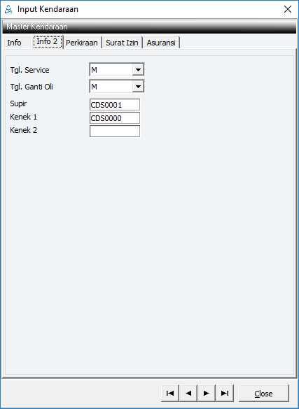 Diisi informasi mengenai tanggal terakhir service dan ganti oli, data supir dan kenek.