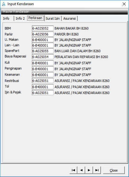 Diisi data mengenai perkiraan yang menampung biaya-biaya dibawah ini. Klik 2x untuk mengambil kode perkiraan.