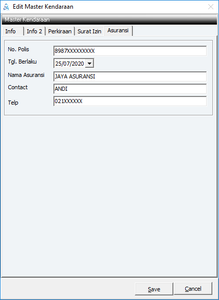 Diisi data asuransi kendaraan.