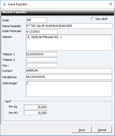 Fungsi dari menu ini adalah untuk menginput Jasa Ekspedisi yang biasa digunakan oleh supplier untuk mengirim barang ke distributor.