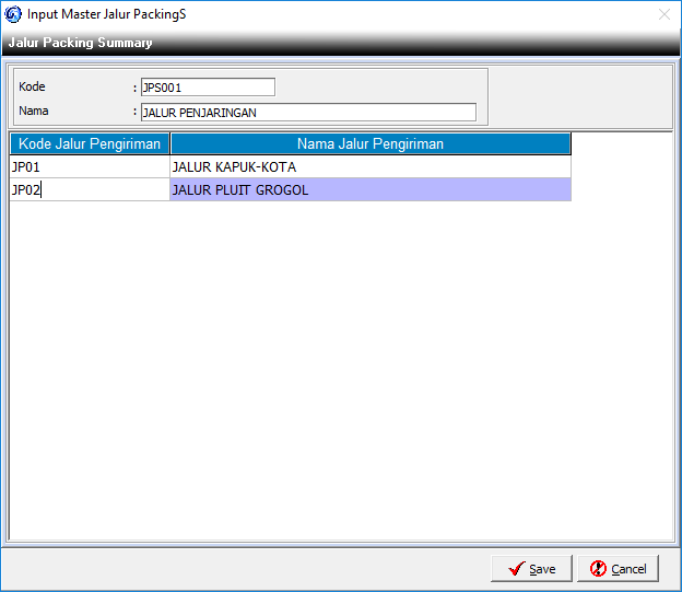 | Kode Jalur Pengiriman | Klik 2x untuk mengambil kode jalur pengiriman. |