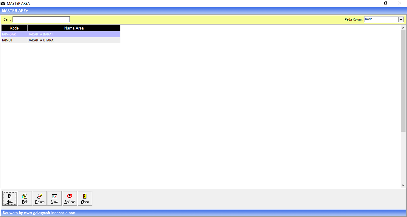 Menu ini digunakan untuk menginput data-data area dimana customer berada.