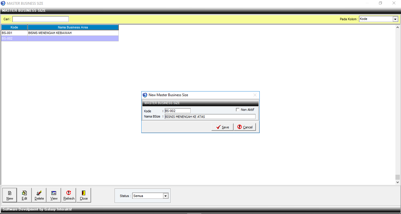 | Kode | Diisi kode area, bisa berupa huruf, angka maupun simbol max 10 karakter . |