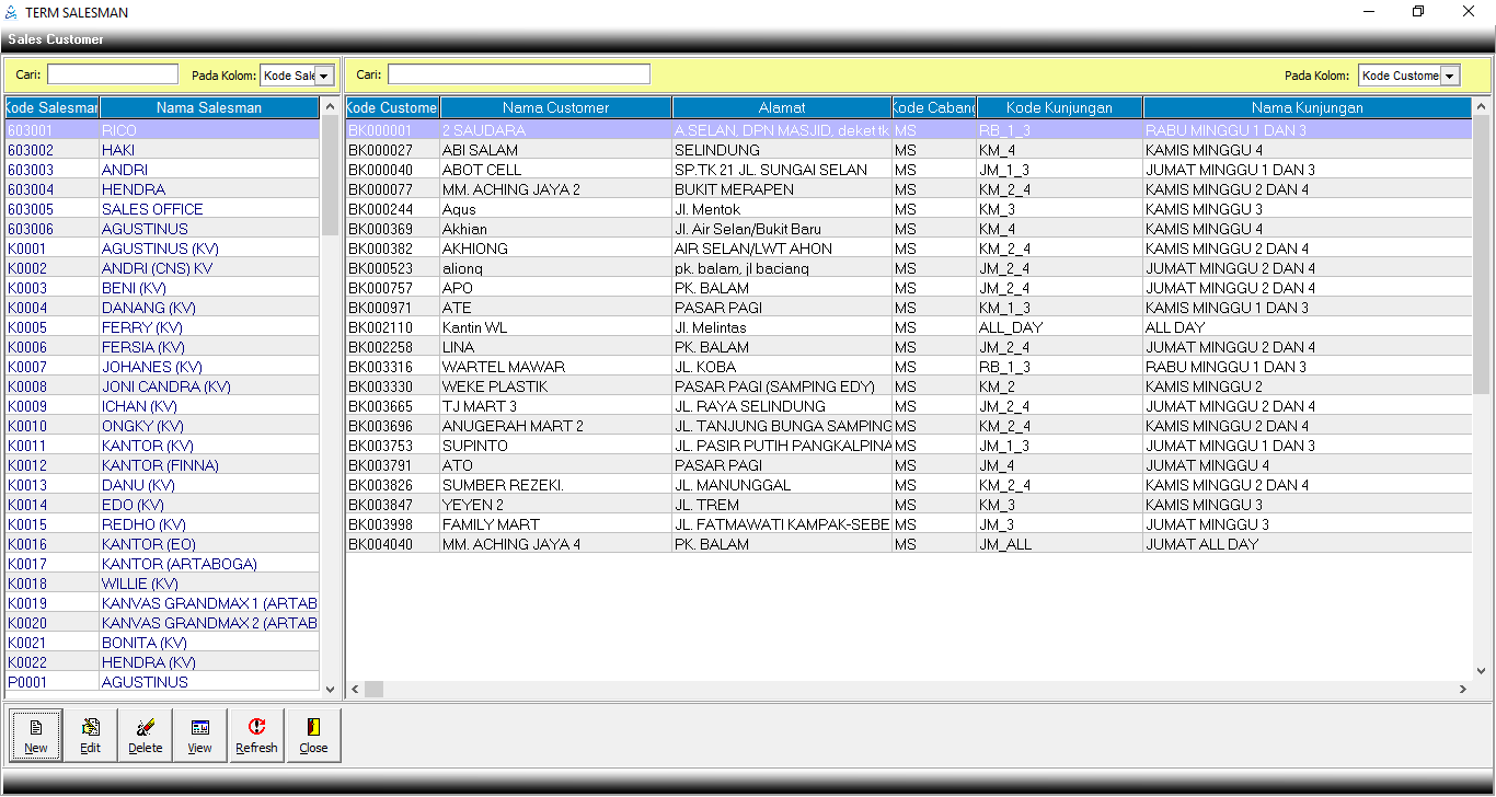 Term salesman, merupakan menu yang digunakan untuk mengelola data-data customer yang dihandle oleh salesman. Satu salesman dapat menangani lebih dari satu customer walaupun termnya berbeda. Menu ini menampilkan data salesman, customer nya siapa saja. Satu toko untuk beberapa salesman.