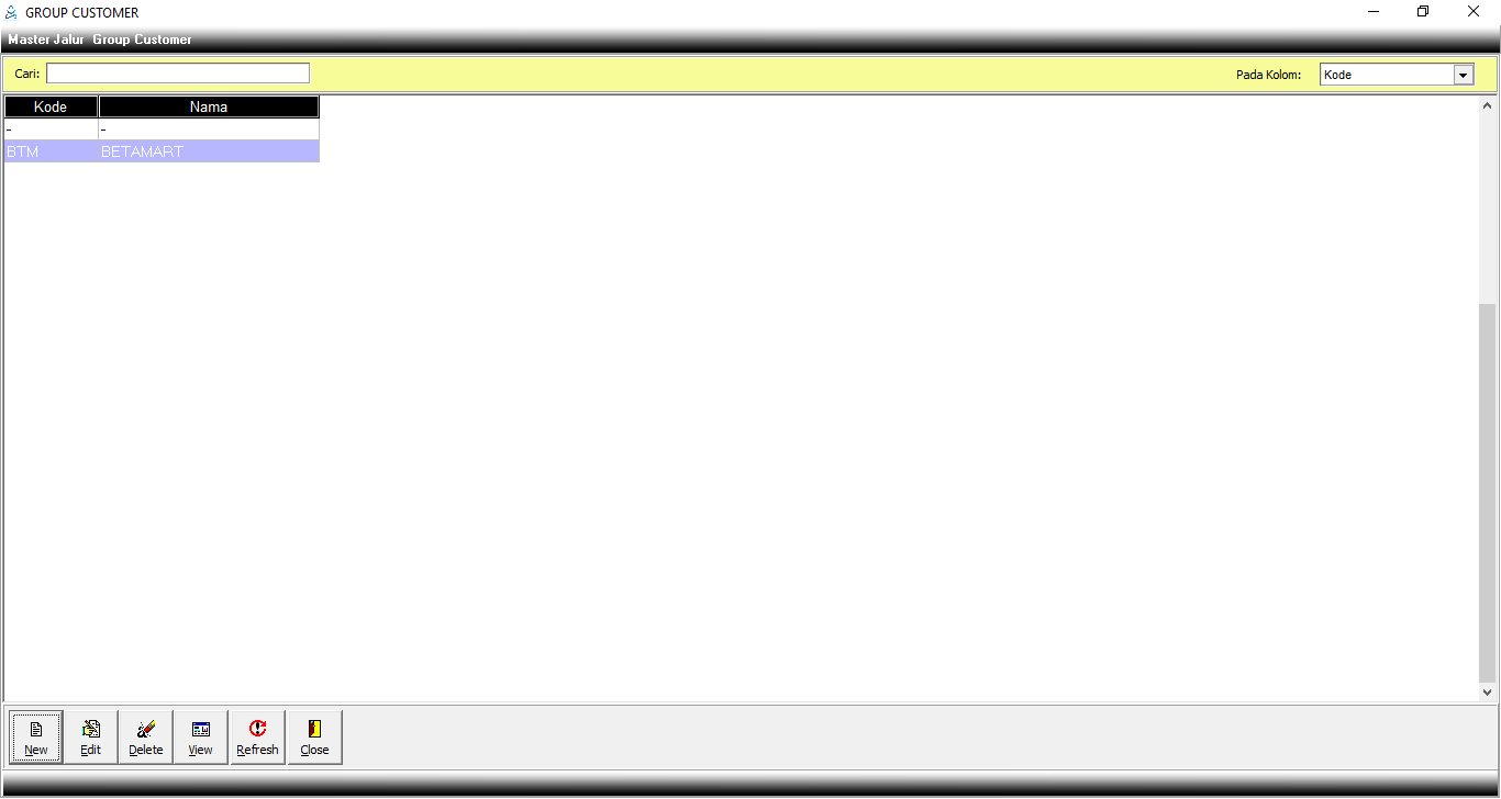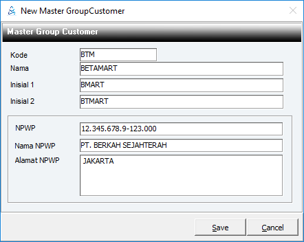 4. Lalu Klik save. Maka akan muncul jendela Master Group Customer.