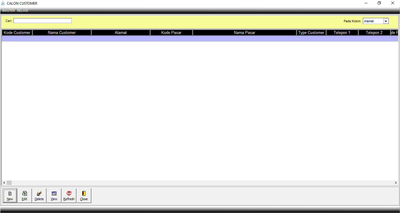 Menu ini digunakan untuk mengelola data calon customer. Nantinya jika calon customer fix menjadi customer, kodenya bisa di tarik ke menu customer.
