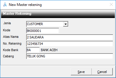 Menu ini digunakan untuk mengelola nomor rekening customer, supplier ataupun karyawan.