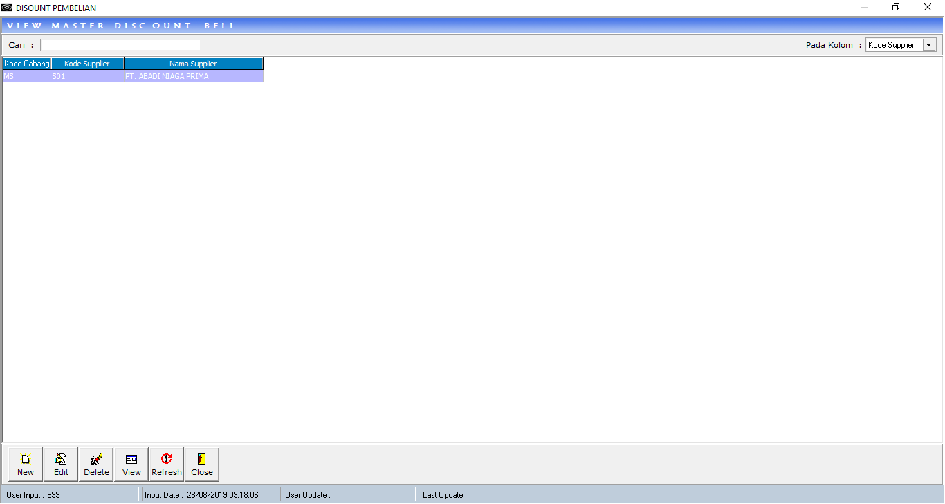 Klik 2x untuk mengambil kode supplier jika akan menarik data barang berdasarkan suppliernya. |