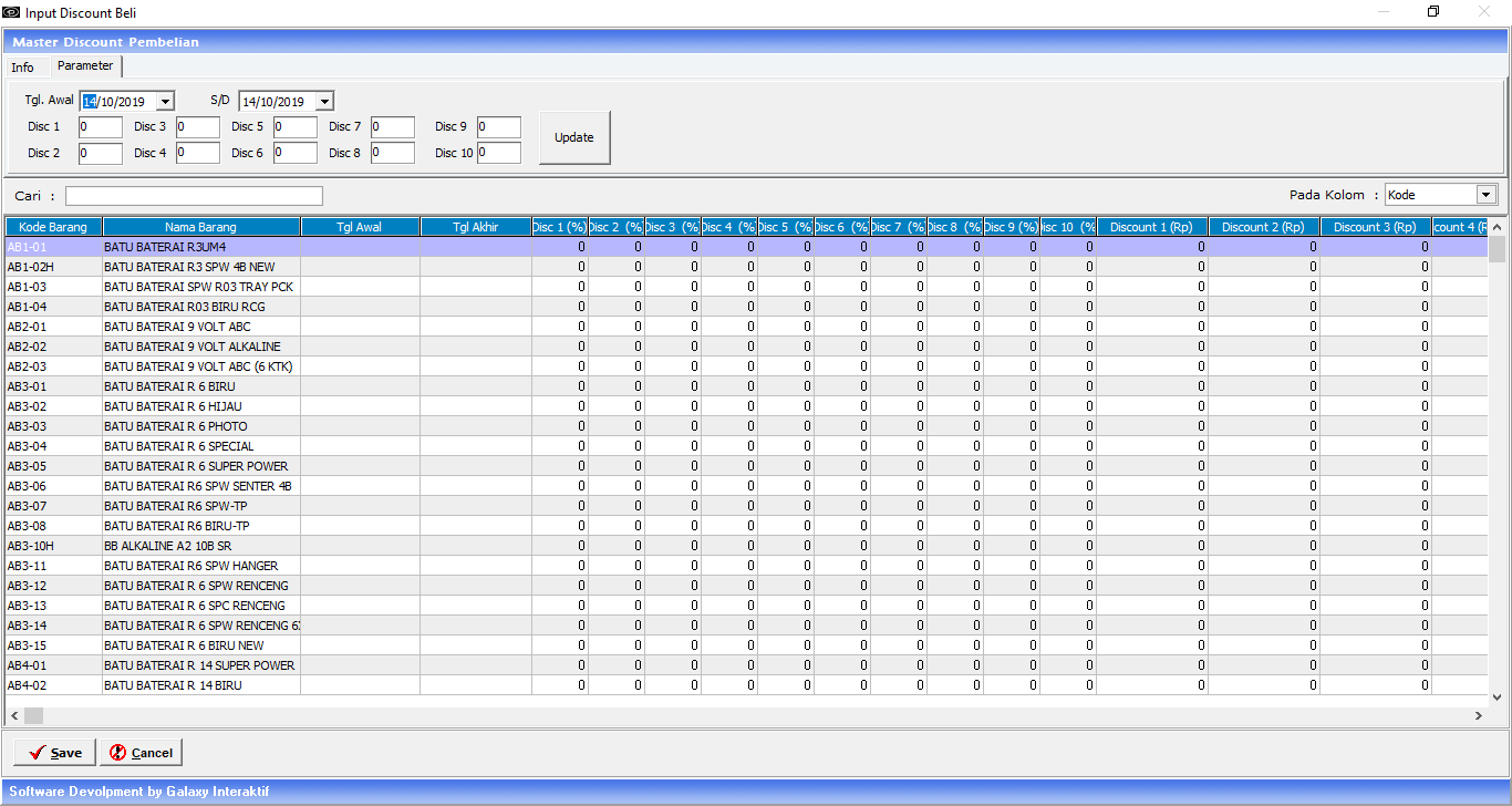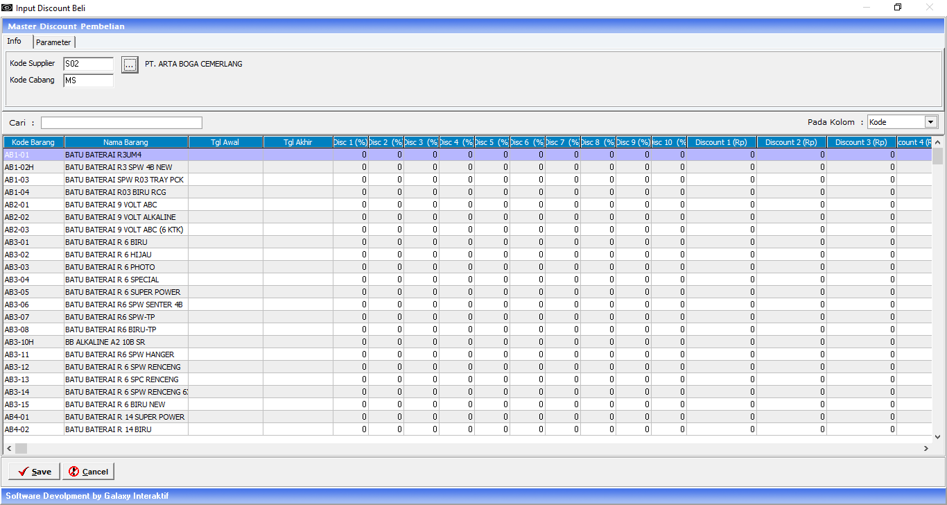 | Discount 1 (Rp) s/d 10 (Rp) | Diisi nilai (Rp) diskon barang |
