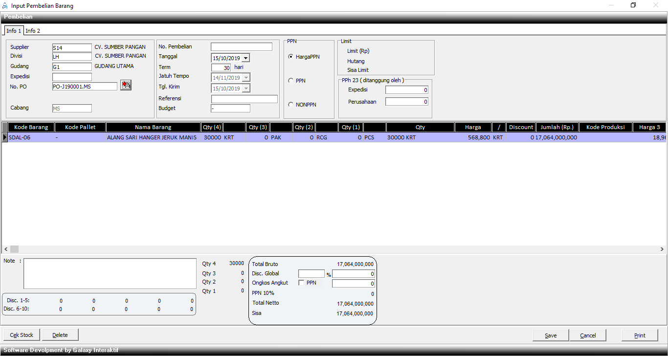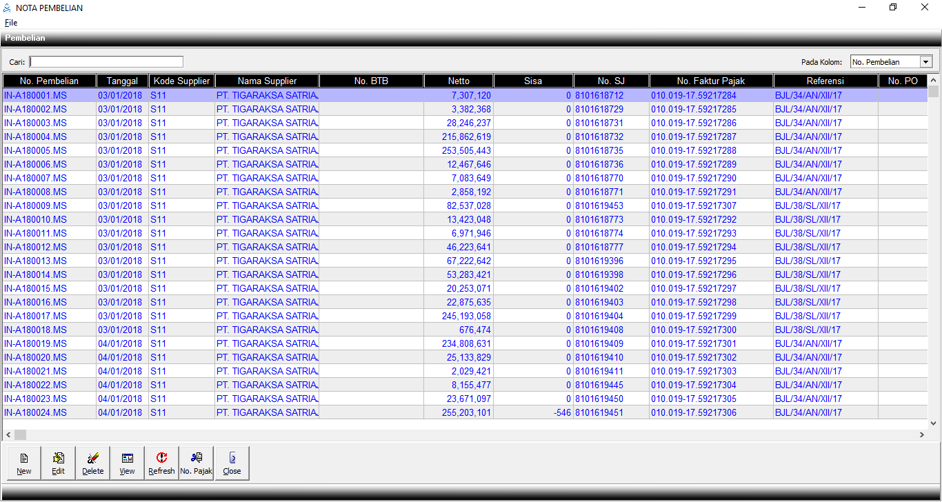 | Supplier | Klik 2x untuk mengambil kode Supplier |
