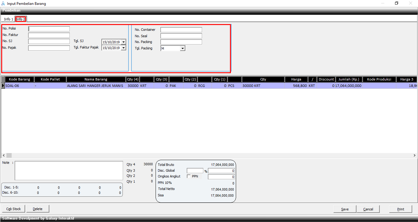 | No. Faktur | Diisi nomor faktur dari supplier. |